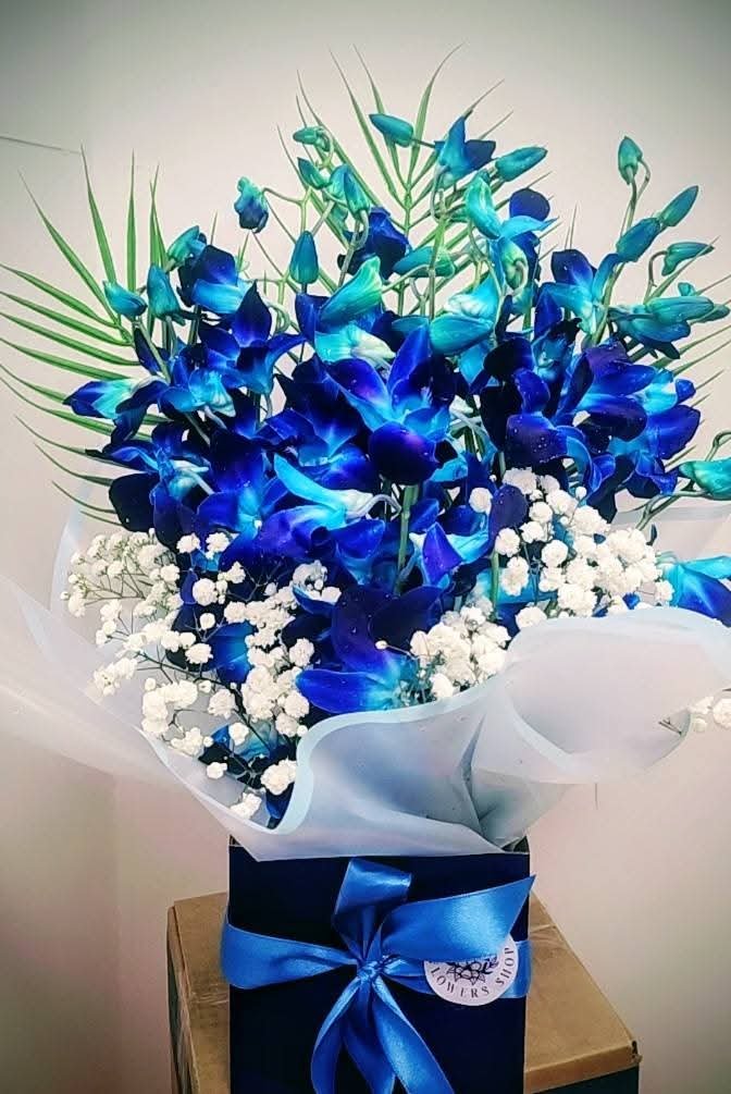 An elegant and refreshing design featuring 10 stems of Singapore orchids, complemented by delicate baby’s breath and lush ferns. A graceful arrangement inspired by ocean beauty, perfect for refined and memorable occasions.