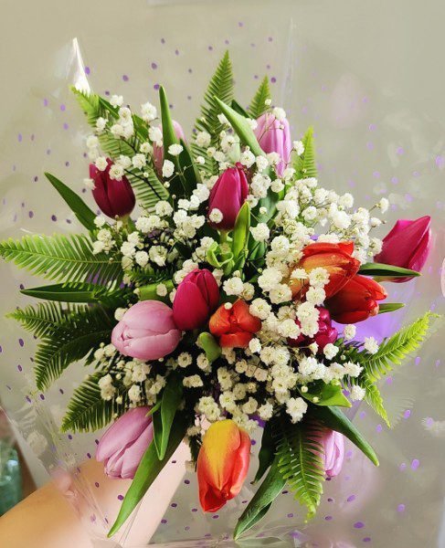 Mix colour of the Tulips together makes for a colourful bouquet. It is suitable for any occasion for example, birthday or graduation…etc.